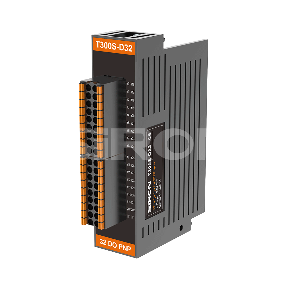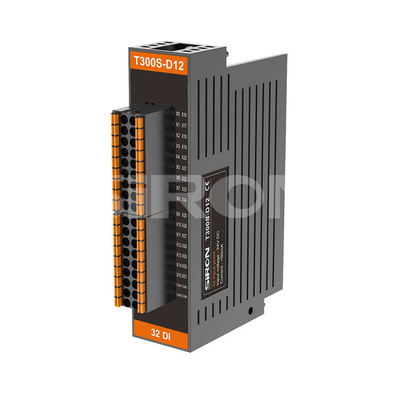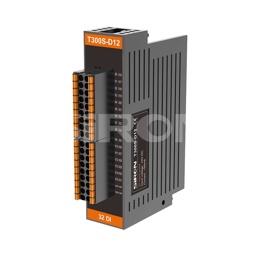 选型举例:T300S-D12代表超薄集成I/O系列, 具有数字量输入输出特性: 32路数字量 输入,0路数字量输出,接口形式:压接端子。