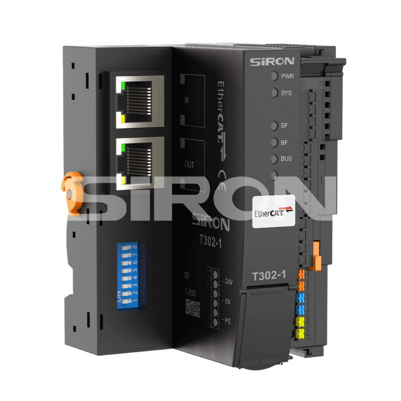 选型示例:T302-1代表插入式远程I/O系列,耦合器协议为标准RJ45网口定义图 EtherCAT。