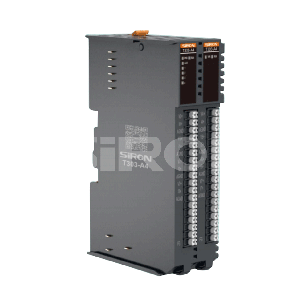 选择示例:T301-A12代表超薄分布式I/O系列,模拟输入/输出特性:4通道模拟输入,0通道模拟输出,接口形式:按终端。
