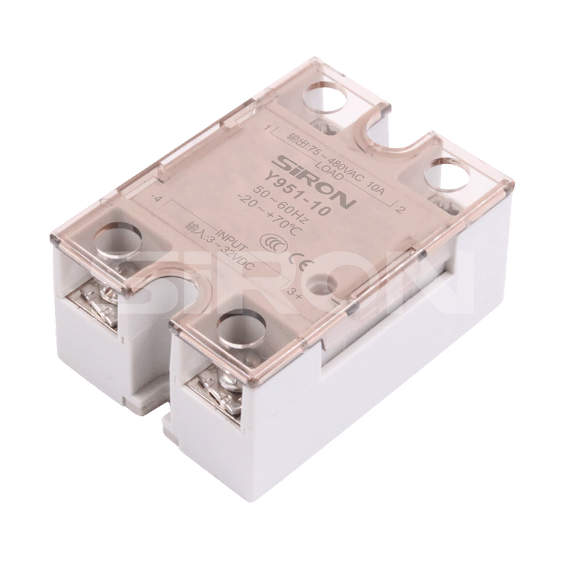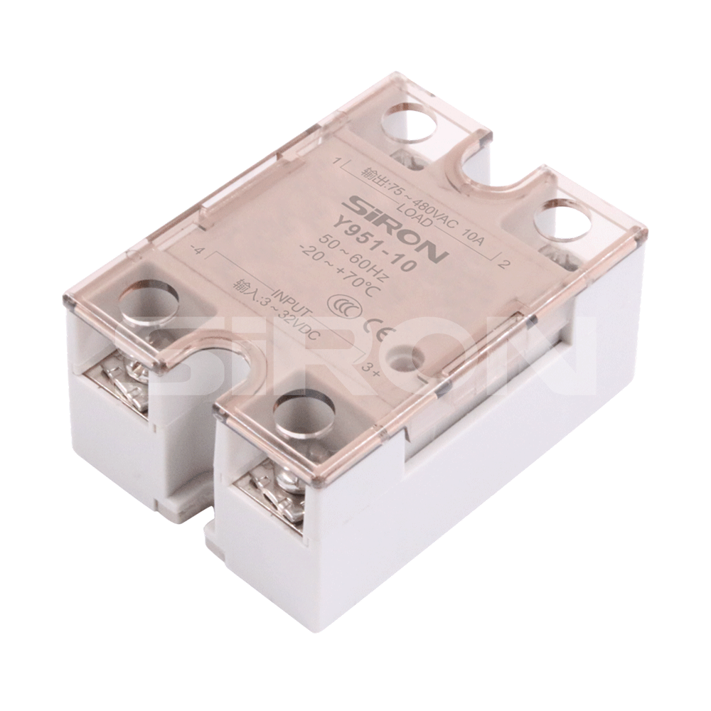 选型示例:Y951-10 固态继电器,直流控交流,负载电压75~480VAC,输出电流10A