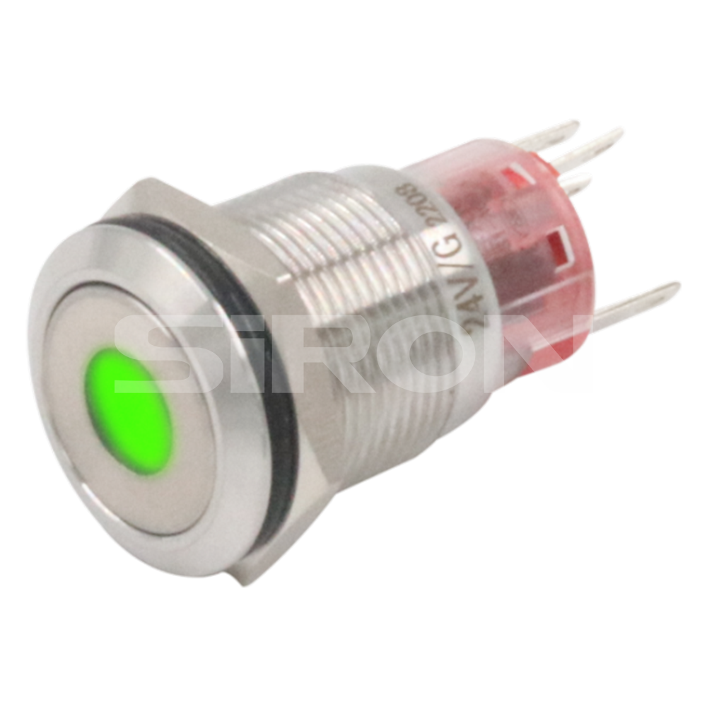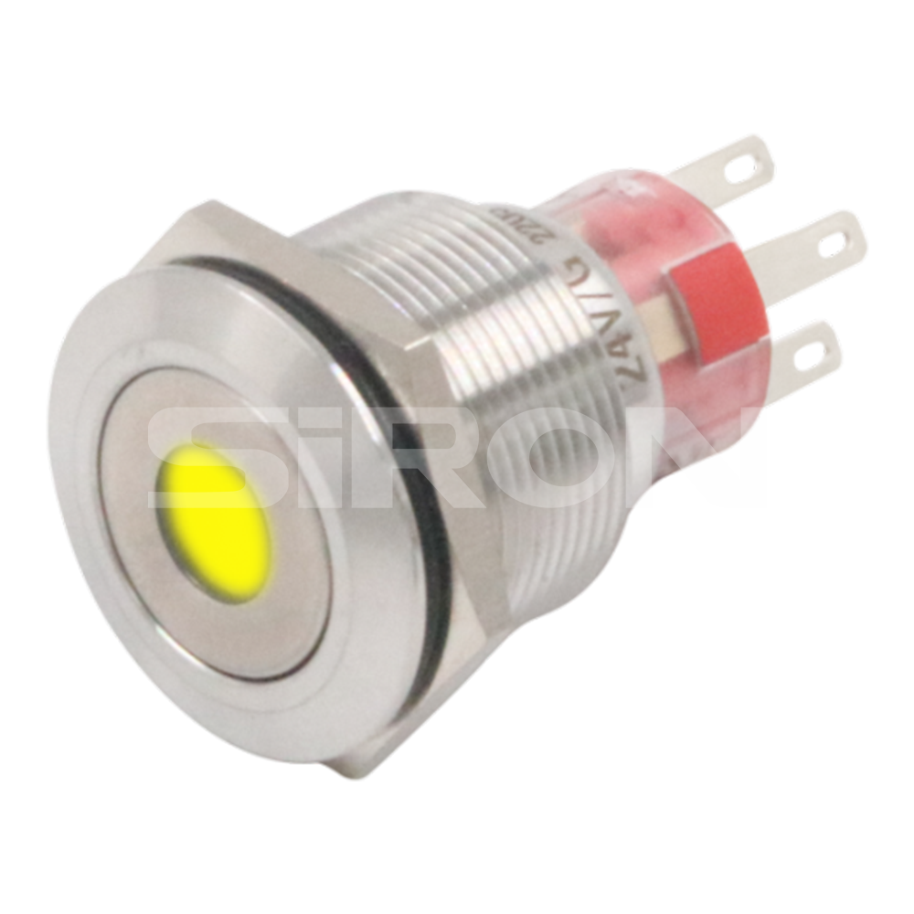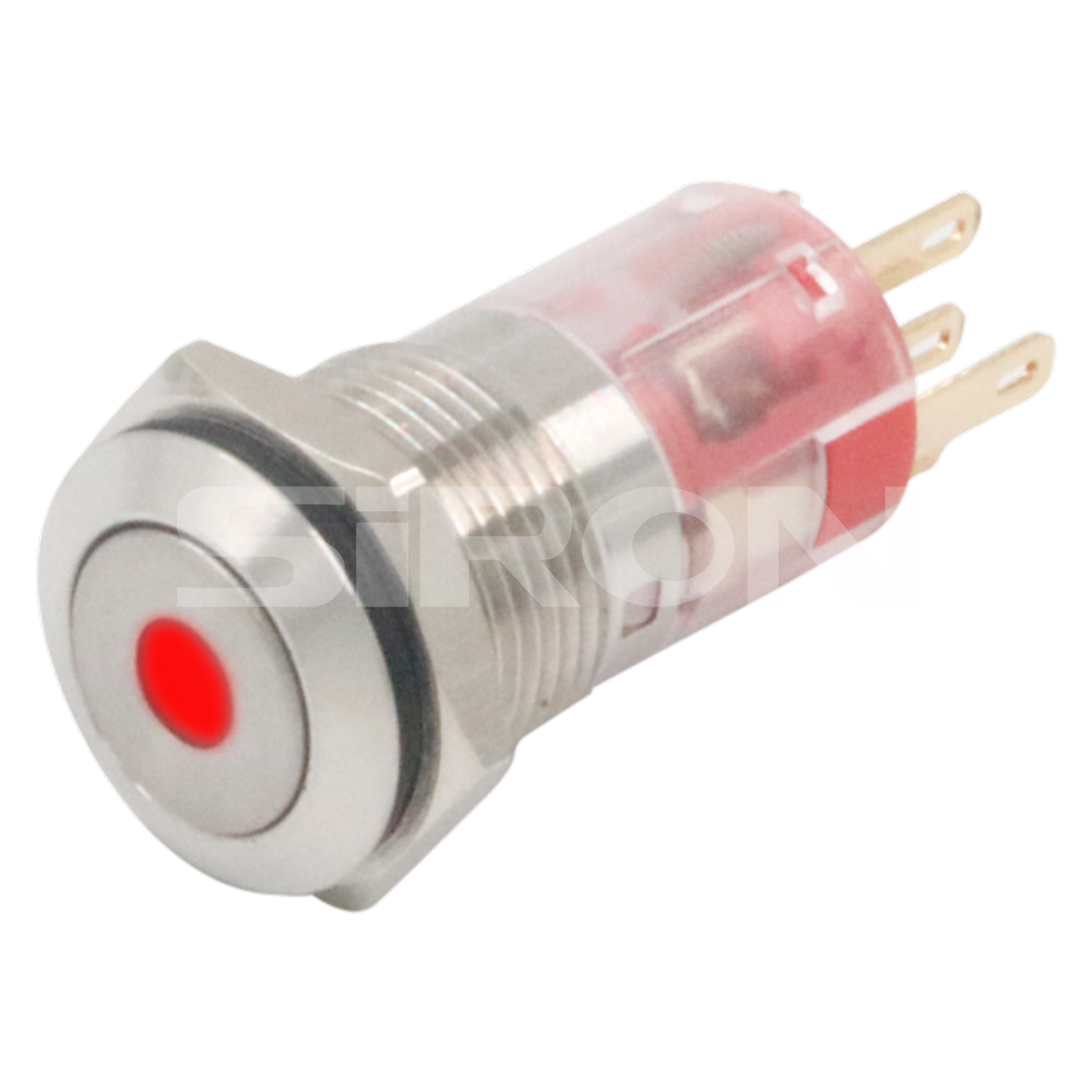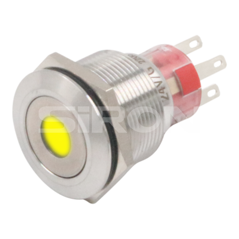 注意:H060-1-16R表示双端类型。焊接垫材料是用黄金镀金的黄铜,带有单个接触点,带有φ16红色24V按钮指示灯。