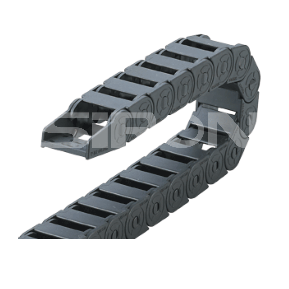 | 外貌 | 模型 | 弯曲半径 R | 内心 | 内部宽度 | 外面亨 | 外部宽度 | J | J1 | 沥青 | 每米 数的部分 | 实际的安全 安装高度 h | 最大线 电缆直径(mm) | 负载, (kg/m) | 链的安装尺寸 | ||