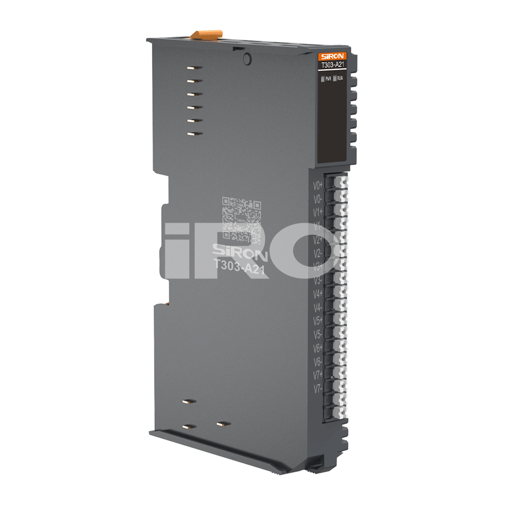 选型举例:T303-A21代表超薄卡式I/O系列,模拟量,输入输出特性:8路温度模块K型热电偶输入,0路温度模块输出。