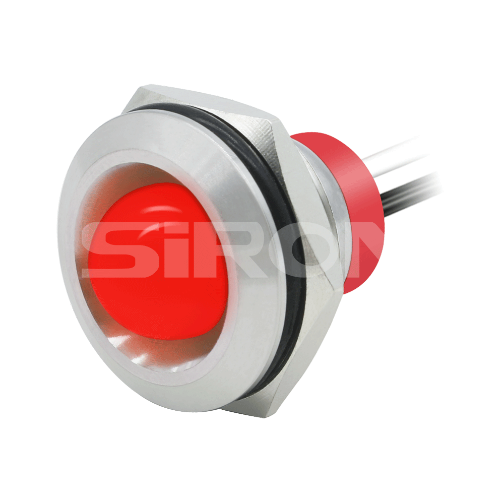 注意:H036(X)-1R-24表示一个球形按钮,其在24V上具有红灯,H036(X)-2R-24表示一个平头纽扣,在24V上带有红灯。